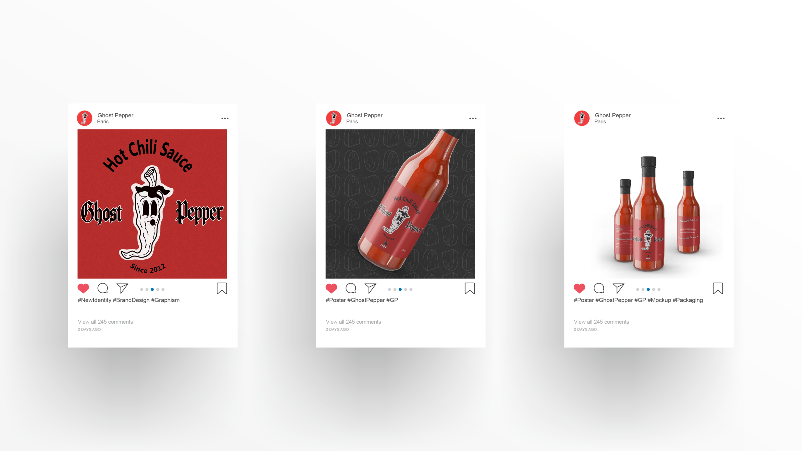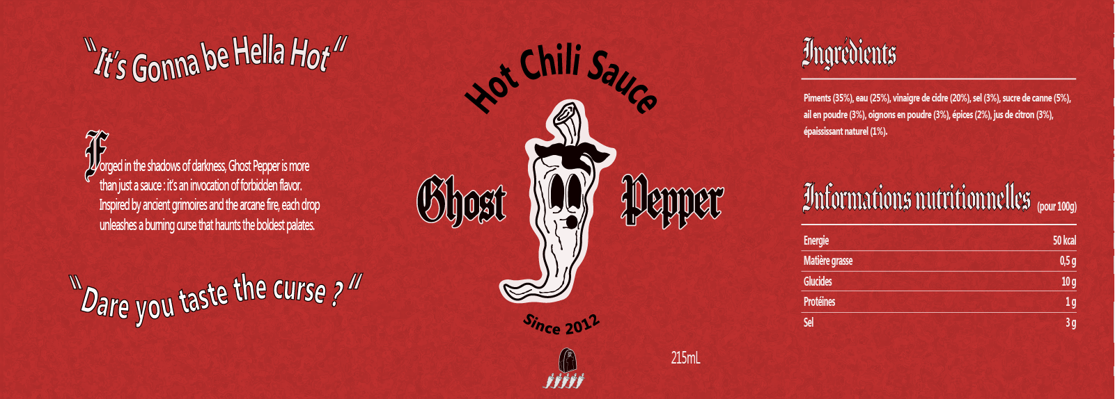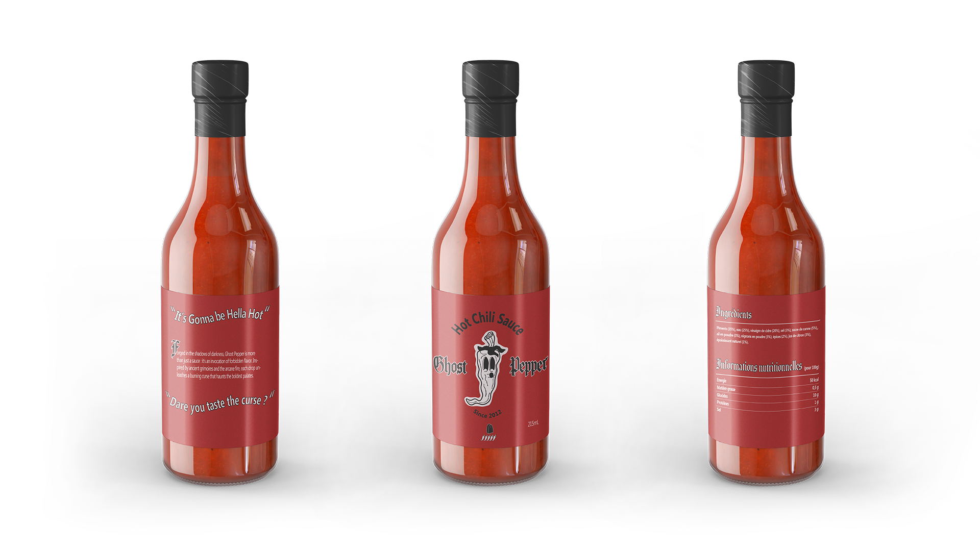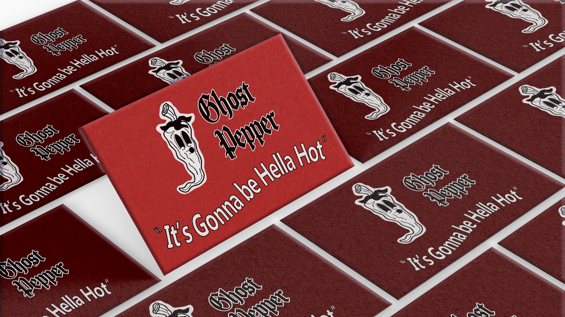 Création d’identité de la marque Ghost Pepper, marque de sauce piquante forte. Ce projet a necessité la création d’un logo, choix typographique, couleurs, mockups…